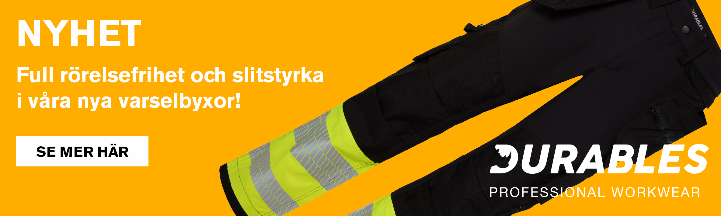Innehållet kan inte visas Durables Varselbyxa kl 2 Leverantörslager Hantverksbyxa KL 2 med stretch, hög synlighet, Cordura®-förstärkta fickor och knän. Leverantörslager 1 686 kr